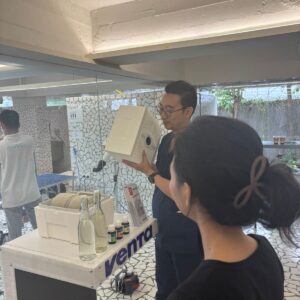 Pengunjung dapat melihat langsung demo Venta Airwasher, dan merasakan sendiri perubahan kualitas udara dengan adanya Venta. Area demo interaktif memungkinkan mereka melihat dan merasakan bagaimana teknologi cold evaporation Venta menciptakan udara bersih, sehat, dan nyaman, baik untuk manusia maupun hewan peliharaan.
